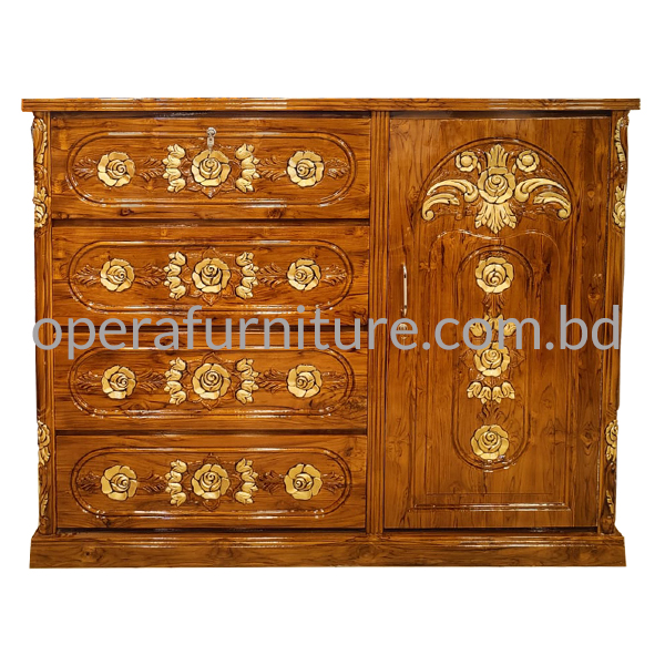 Introduce timeless elegance and unmatched durability to your home with the Wardrobe-OP-Mk 01 by Opera Furniture. Crafted from premium-grade Teak Wood, this wardrobe features a sophisticated lacquer polish and hand-carved floral designs, adding charm and character to any space.
